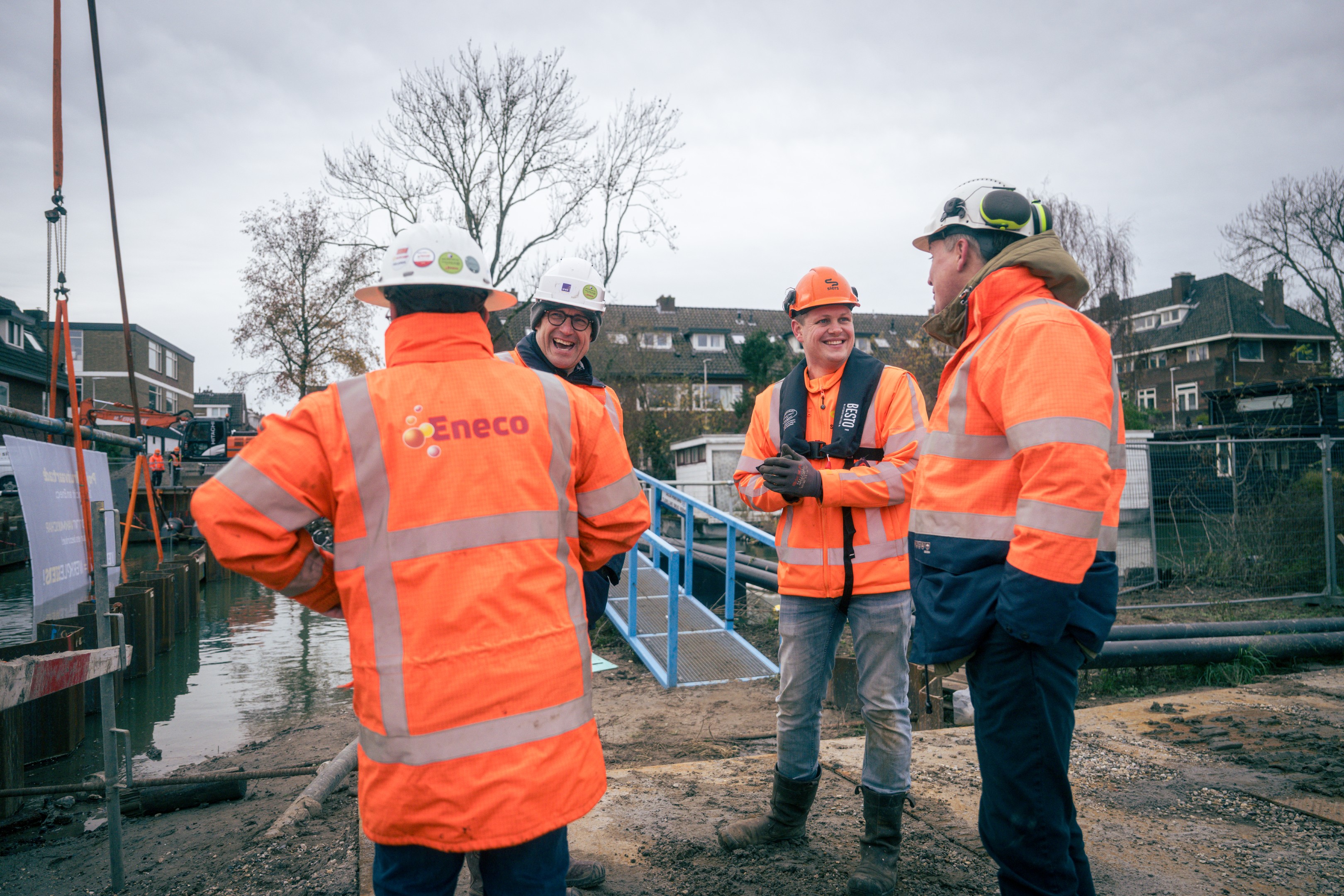 Aan de Kruisvaartkade in Utrecht werkt het team van Siers aan een project dat je gerust uniek kunt noemen. Midden in het drukke en complexe hart van de stad, vlak bij de woonboten in de vaart, wordt gewerkt aan de vernieuwing van één van de oudste stadswarmtenetten van Nederland. Een bijzonder karwei met een rijke geschiedenis, creatieve technische oplossingen en een flinke dosis vakmanschap. Teammanager Robbert de Visser vertelt hoe zijn team zich door de uitdagingen heeft gewerkt, op weg naar het grote moment: het inhijsen van een gigantische zinker.