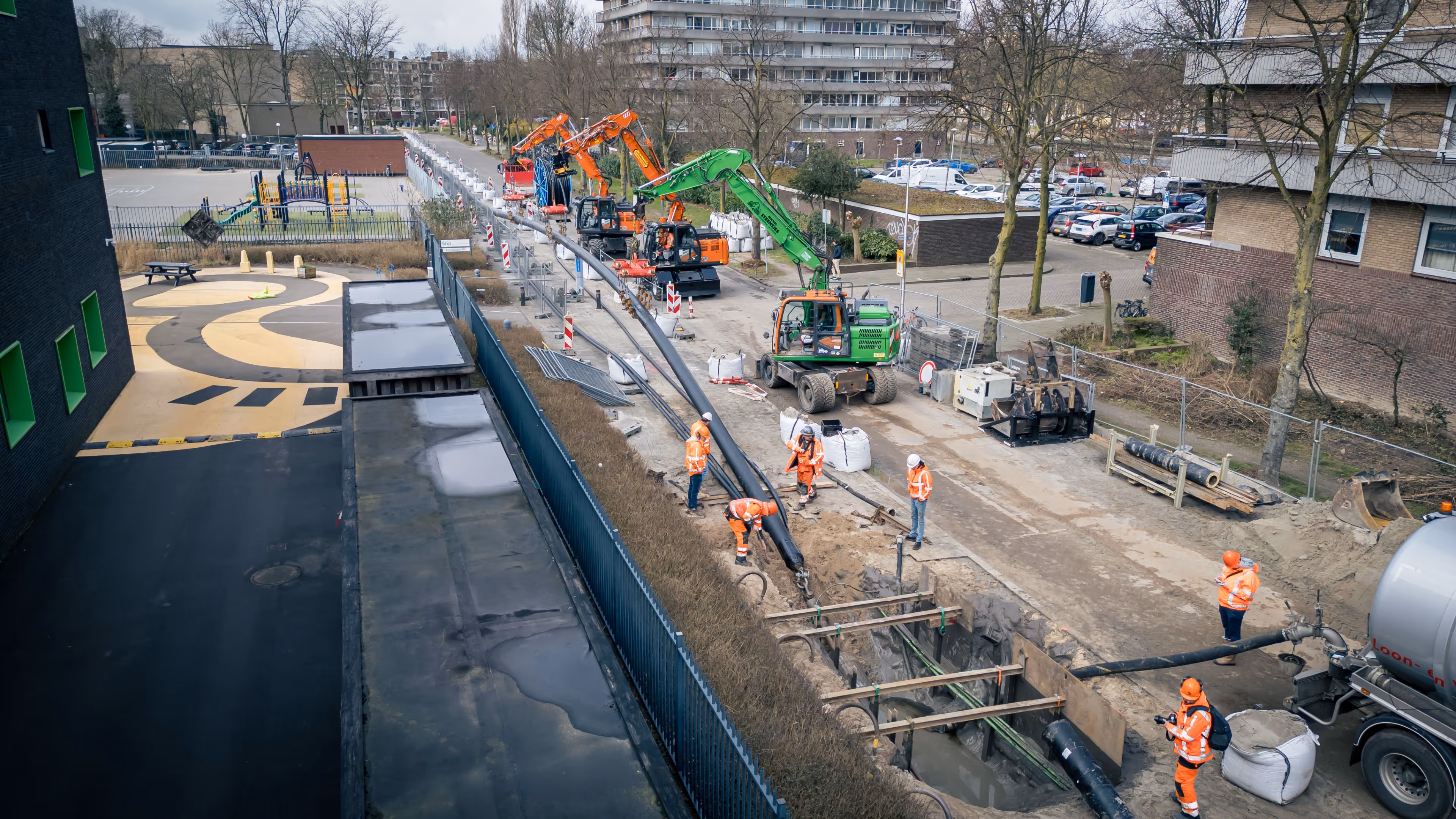 Wat dit project extra bijzonder maakt: dit keer werden ook direct maatregelen genomen om toekomstige schade te voorkomen. In de nieuwe boring zijn drie mantelbuizen voor telecom meegetrokken, zodat de betreffende provider een eigen tracé heeft — zonder opnieuw de leidingen van Eneco te kruisen.